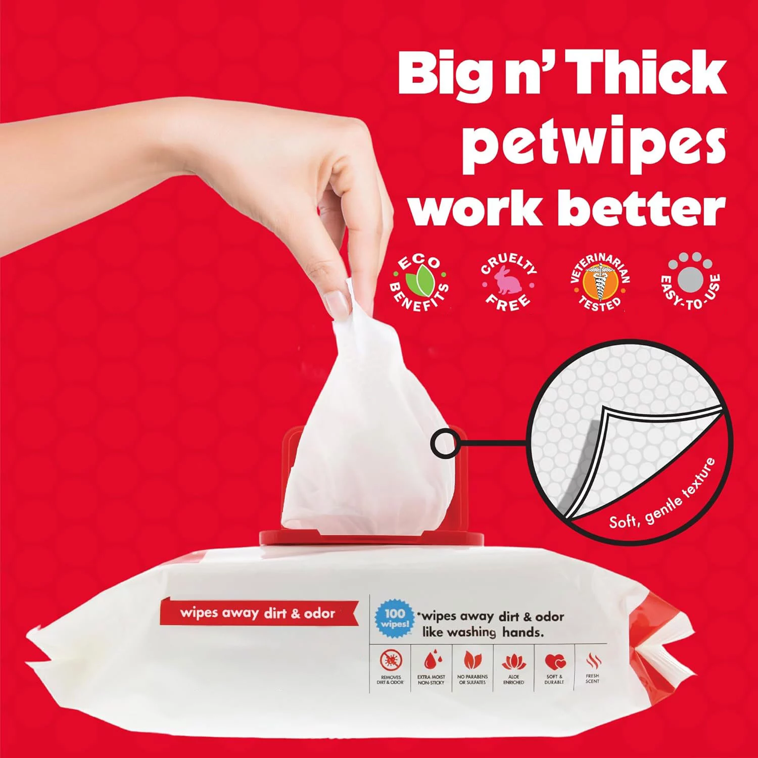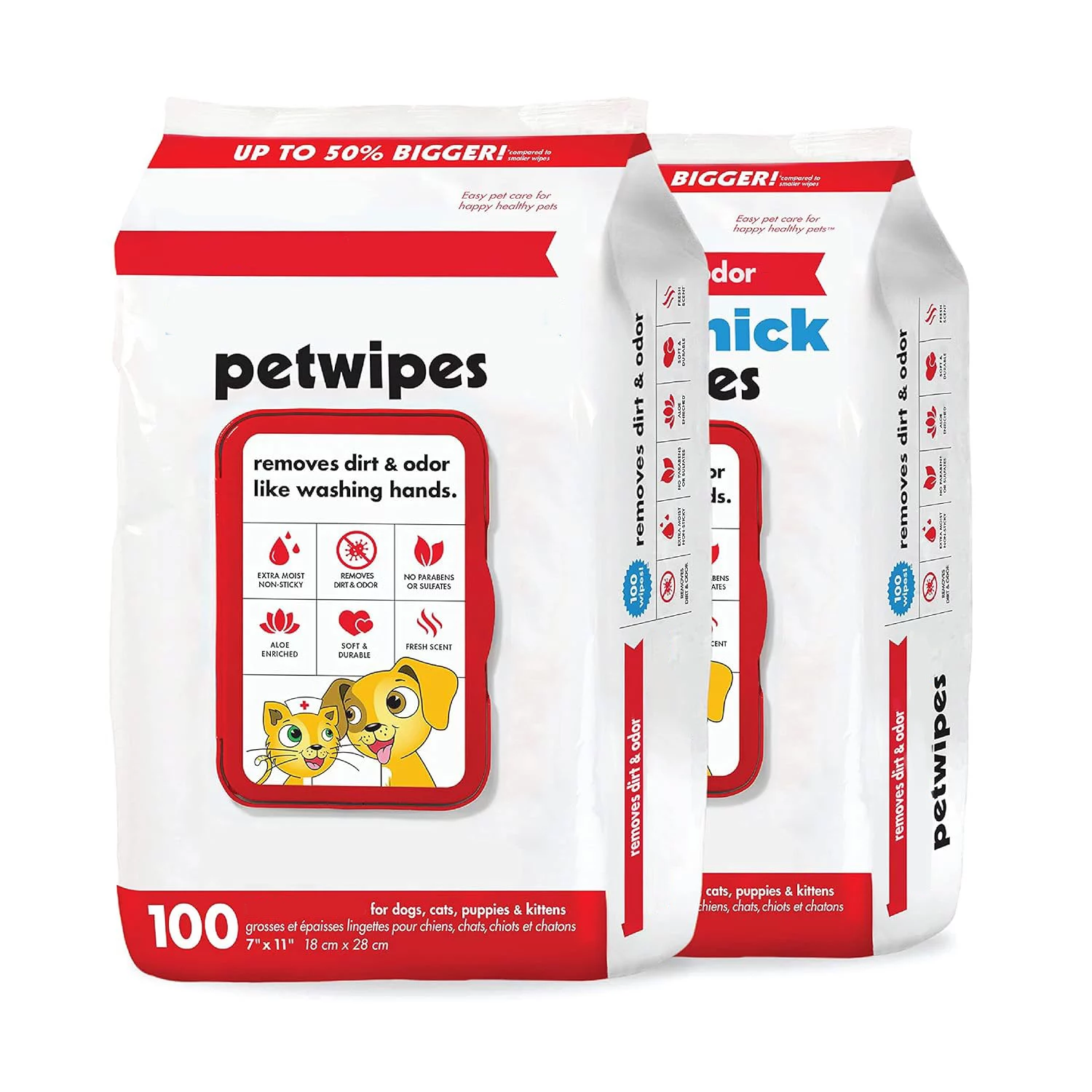 प्रत्येक पोंछ 7 x 11 इंच को मापता है, जो नियमित वाइप्स से बड़ा होता है, जो इसे विशेष रूप से बड़े पालतू जानवरों के लिए मध्यम के लिए उपयुक्त बनाता है। बड़े आकार न केवल उपयोग की मात्रा को कम करता है, बल्कि आपके पालतू जानवर के पूरे शरीर को अधिक कुशलता से साफ करता है, विशेष रूप से मोटे फर या बड़े पालतू जानवरों के साथ पालतू जानवरों के लिए।